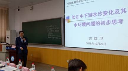 清华大学教授方红卫作题为:《长江中下游水沙变化及其水环境生态问题的初步思考》报告