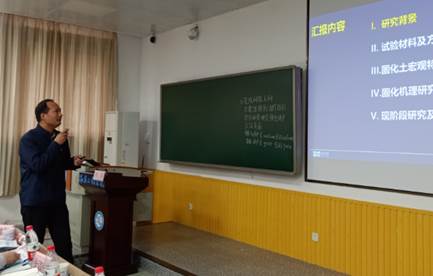 中国水利水电科学研究院高工肖建章作题为:《基于MICP技术的淤泥固化研究》的报告
