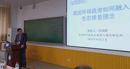 中国科学院南京地理与湖泊研究所研究员范成新作题为:《底泥环保疏浚如何融入生态修复理念》的报告