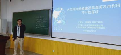 中交天津港湾工程研究院有限工程公司高工寇晓强作题为:《大型跨海通道建设疏浚泥及再利用可行性探讨》的报告