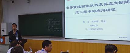 河海大学副研究员陈龙作题为:《土体就地固化技术及其在太湖隧道工程中的应用研究》的报告