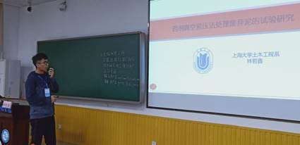 上海大学硕士生林哲鑫作题为:《药剂真空预压处理废弃泥的试验研究》的报告