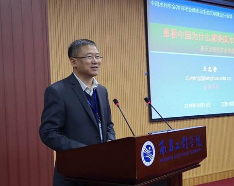 清华大学土木水利学院副院长、教授王忠静作题为:《再看中国为什么需要南水北调—基于宏观经济水资源理论的视角》的报告