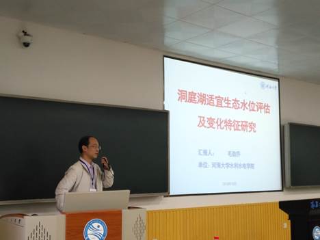 河海大学水利水电学院教授、博士生导师 毛劲乔 作题为:《洞庭湖适宜生态水位评估及变化特征研究》的报告