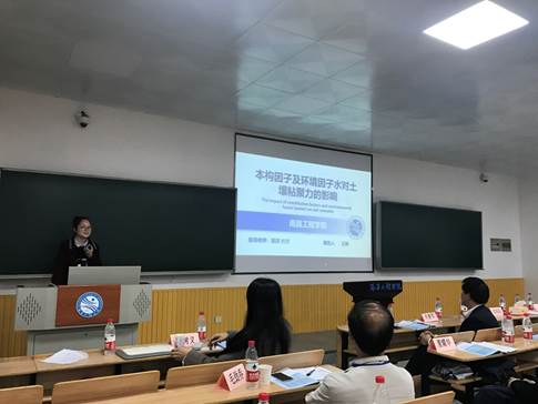 南昌工程学院硕士研究生 王赫 作题为:《本构因子及环境因子水对土壤黏力的影响》的报告