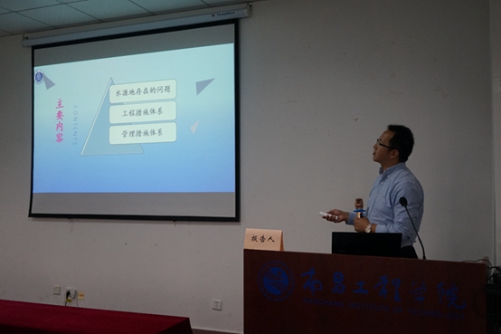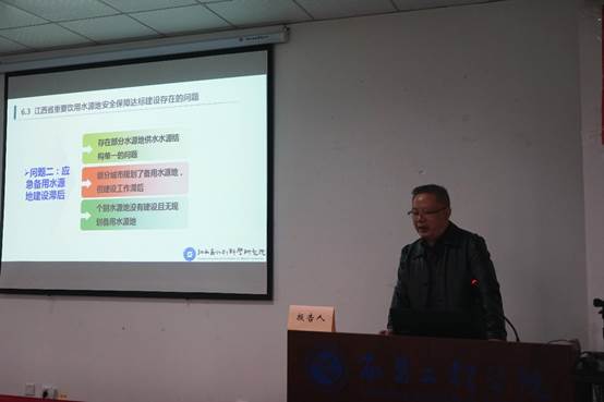 江西省水利科学研究院副院长、教高许新发做题为《江西省重要饮用水源地达标建设现状及对策措施》的报告