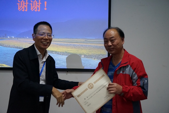 王方清为鱼京善颁发分会场报告证书