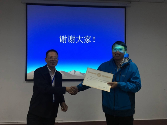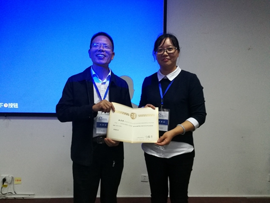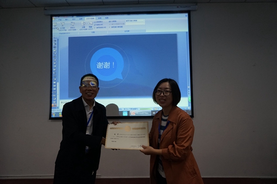 如图:杨永德为叶琰颁发分会场报告证书