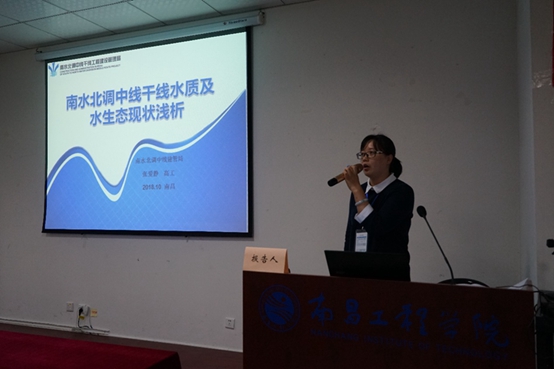 南水北调中线干线工程建设管理局高工张爱静做题为《南水北调中线干线水质及水生态现状浅析》的报告