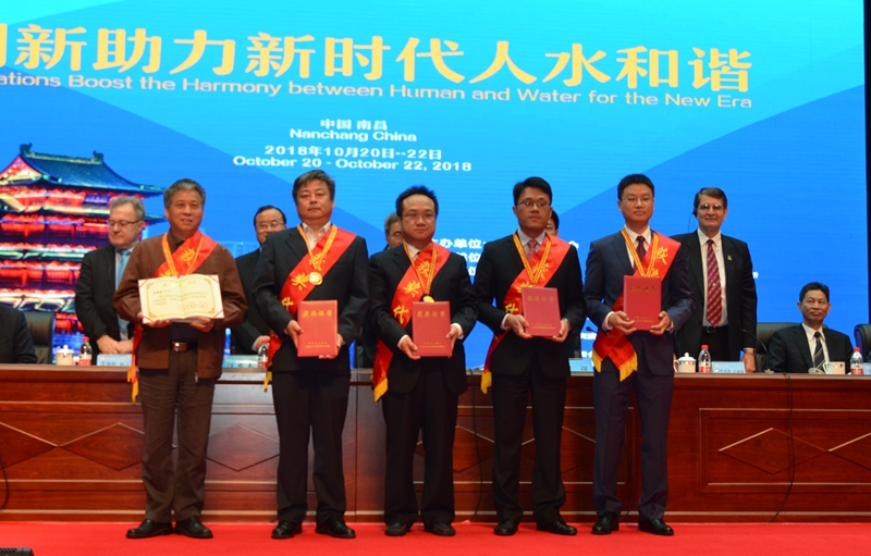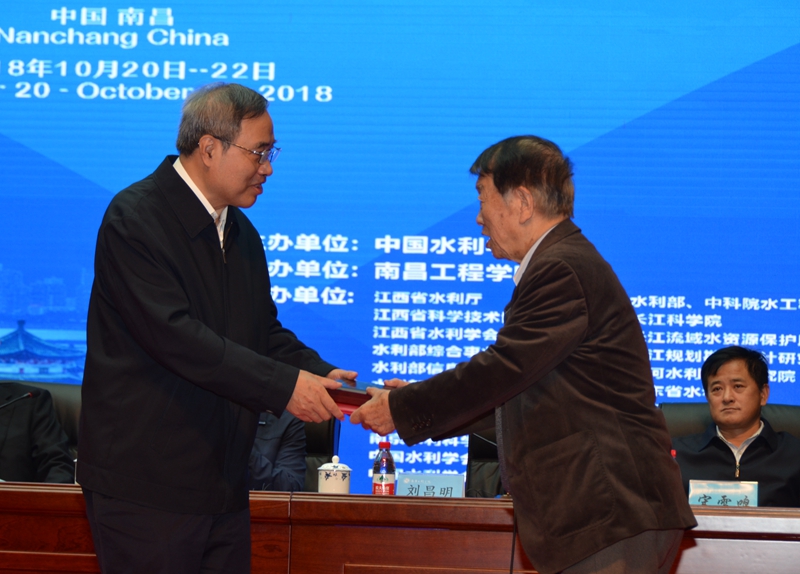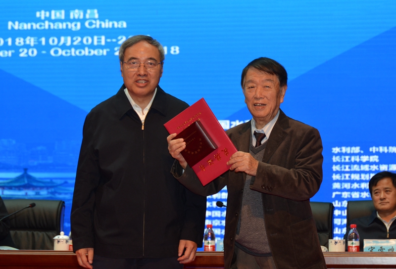 中国水利学会胡四一理事长为刘光文科技成就奖获得者中国科学院刘昌明院士颁奖