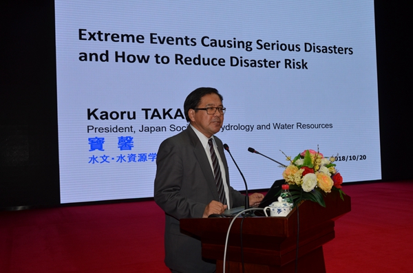 日本水文水资源学会主席、日本京都大学教授宝馨作题为:《极端事件引发灾害及减灾对策》特邀报告