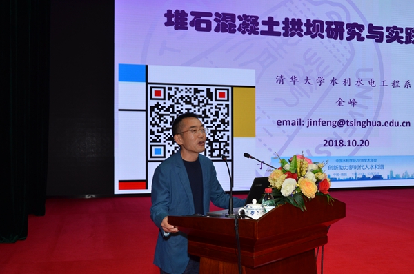 贵州省遵义市水利水电勘测设计研究院总工张全意教授级高工代清华大学金峰教授作题为:《堆石混凝土拱坝研究与实践》特邀报告