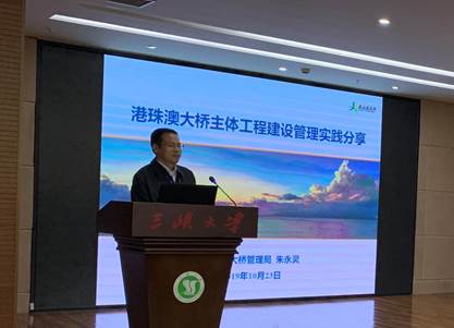 港珠澳大桥管理局党委书记朱永灵做题为《港珠澳大桥主体工程建设管理实践分享》的报告,从港珠澳大桥总体情况、建设意义、创新成果、成功经验及对粤港澳大湾区建设的启示等方面做了精彩的报告,引起与会专家、学者的一致好评。