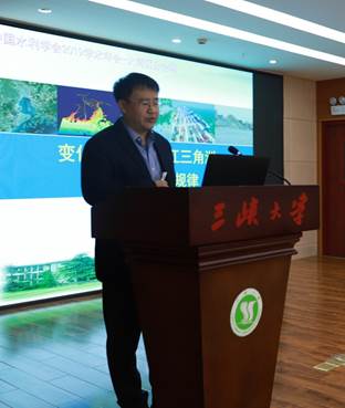 河海大学港航学院张蔚副院长做题为《变化环境下的珠江三角洲潮波运动演变规律》的报告