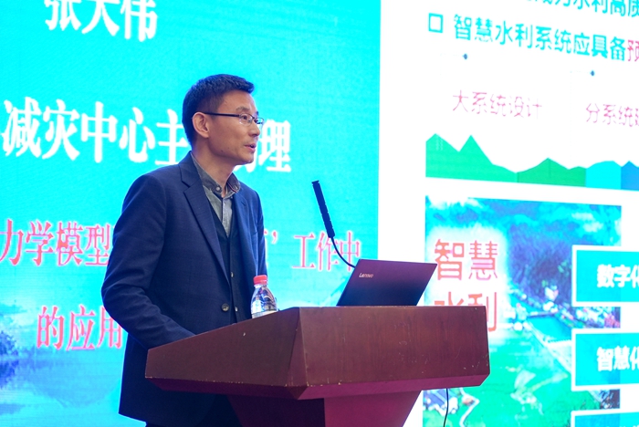 水利部减灾中心主任助理张大伟作题为《新一代洪水动力学模型及其在“四预”工作中的应用》的报告