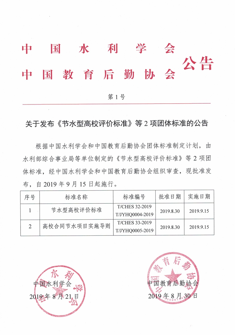 关于联合发布《节水型高校评价标准》等2项团体标准的公告