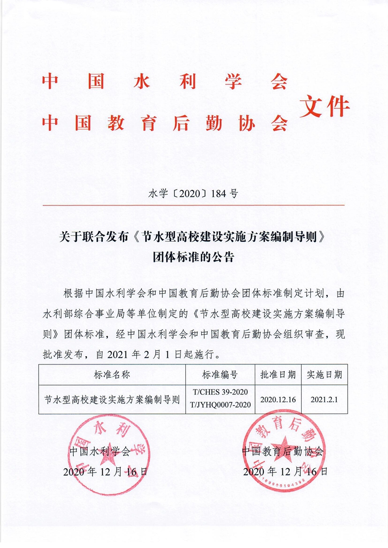 关于联合发布《节水型高校建设实施方案编制导则》团体标准的公告