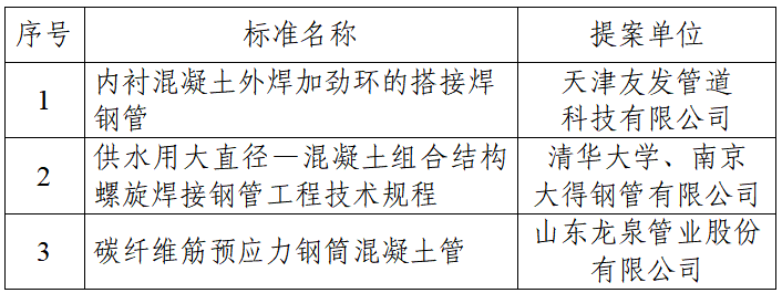近期,中国水利学会组织相关专家对《内衬混凝土外焊加劲环的搭接焊钢管》等3项团体标准进行了立项论证。经论证,建议这3项标准立项。标准有关信息公示如下: