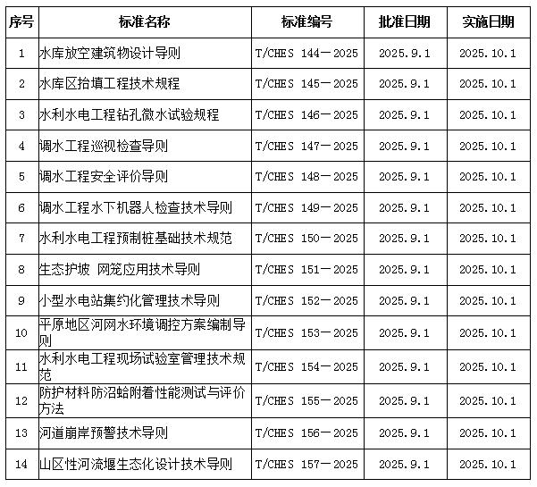 中国水利学会关于批准发布《水库放空建筑物 设计导则》等14项团体标准的公告