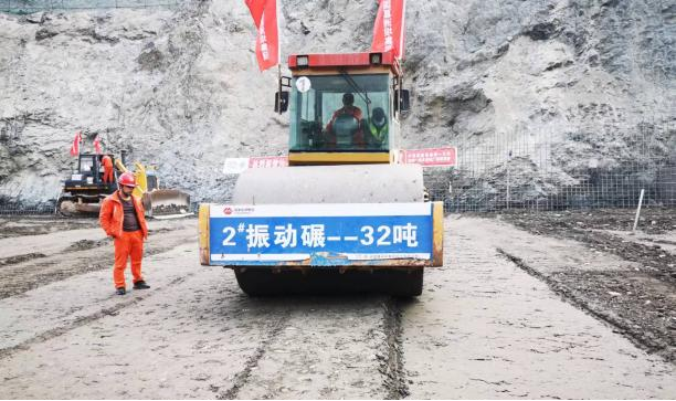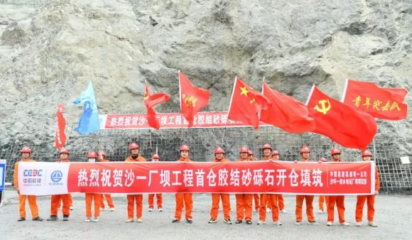 作为大型水电主体工程首次采用胶结坝筑坝技术,为确保工程质量和加快建设进度,工程建设者统筹协调,先后安装两套胶结砂砾石专用拌和系统,配置充足的运输及摊铺、碾压设备,中国水科院专家和工程设计人员现场指导,组织开展胶结砂砾石生产性碾压试验,成立施工质量管理QC攻关小组,从施工仓面、道路布置、浇筑强度、设备、人员、质量环保及安全保证措施等方面进行详细规划。2022年9月26日,水电站厂坝项目一期枢纽工程主体结构首仓混凝土开仓浇筑,标志着该工程由前期开挖全面转入主体结构施工。11月18日,水电站厂坝工程首仓胶结砂砾石开仓浇筑。