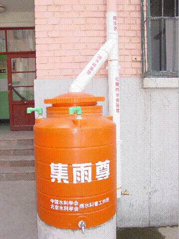 2、地上储雨容器(桶、罐),多用于收集屋顶雨水,所收集的雨水主要用于庭院洒水、浇灌花草,节约自来水。储雨容器主要为铁桶、塑料罐和其他容器等,体积一般都小于1立方米。根据水的用途可以考虑安装或不安装初期雨水去除器。这种储雨装置可以直接接在雨落管上,制作简单,适合一般居民楼、平房或四合院采用。
