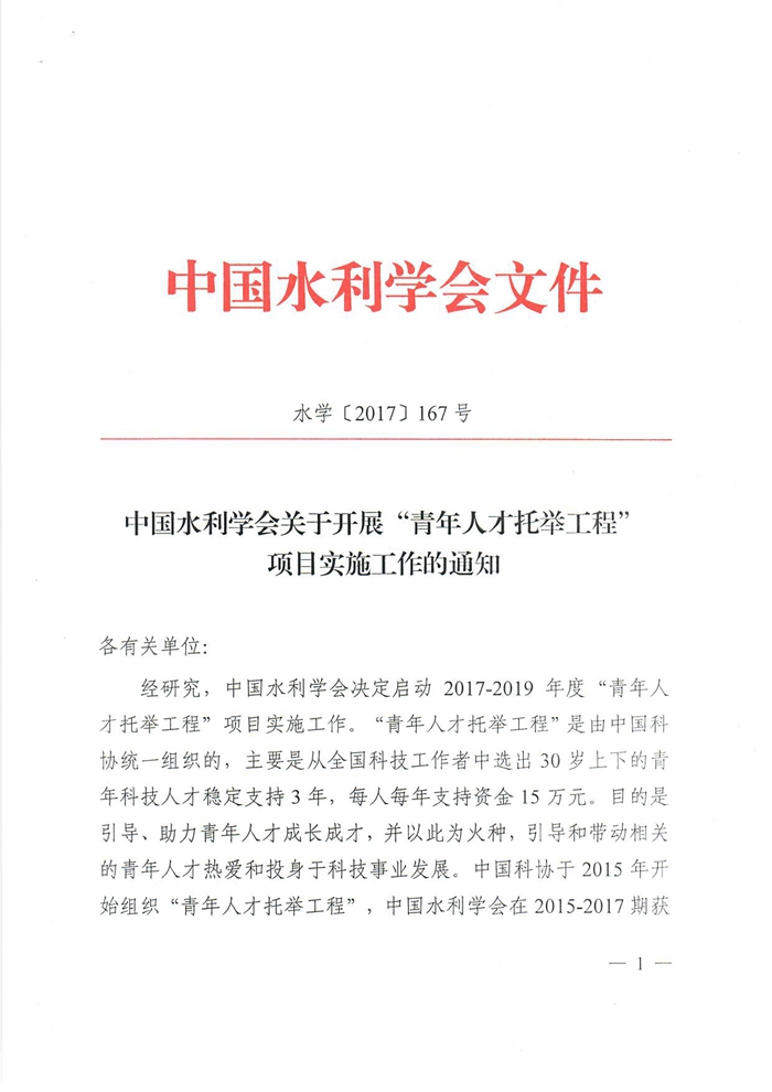 中国水利学会关于开展2017-2019年度“青年人才托举工程”的通知
