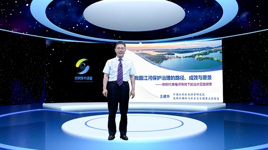 本站讯 9月28日,为迎接首个“全国科普月”,中国水利学会“水科学大讲堂”2025年第5场直播活动(总第7讲)在北京成功举行。本次活动邀请了中国水利水电科学研究院副院长、流域水循环与水安全全国重点实验室主任王建华进行科普直播讲座,直播间实时点击量突破100万,线上观众积极提问并互动转发。中国水利学会副秘书长刘忠恒出席讲座并为王建华副院长颁发证书。