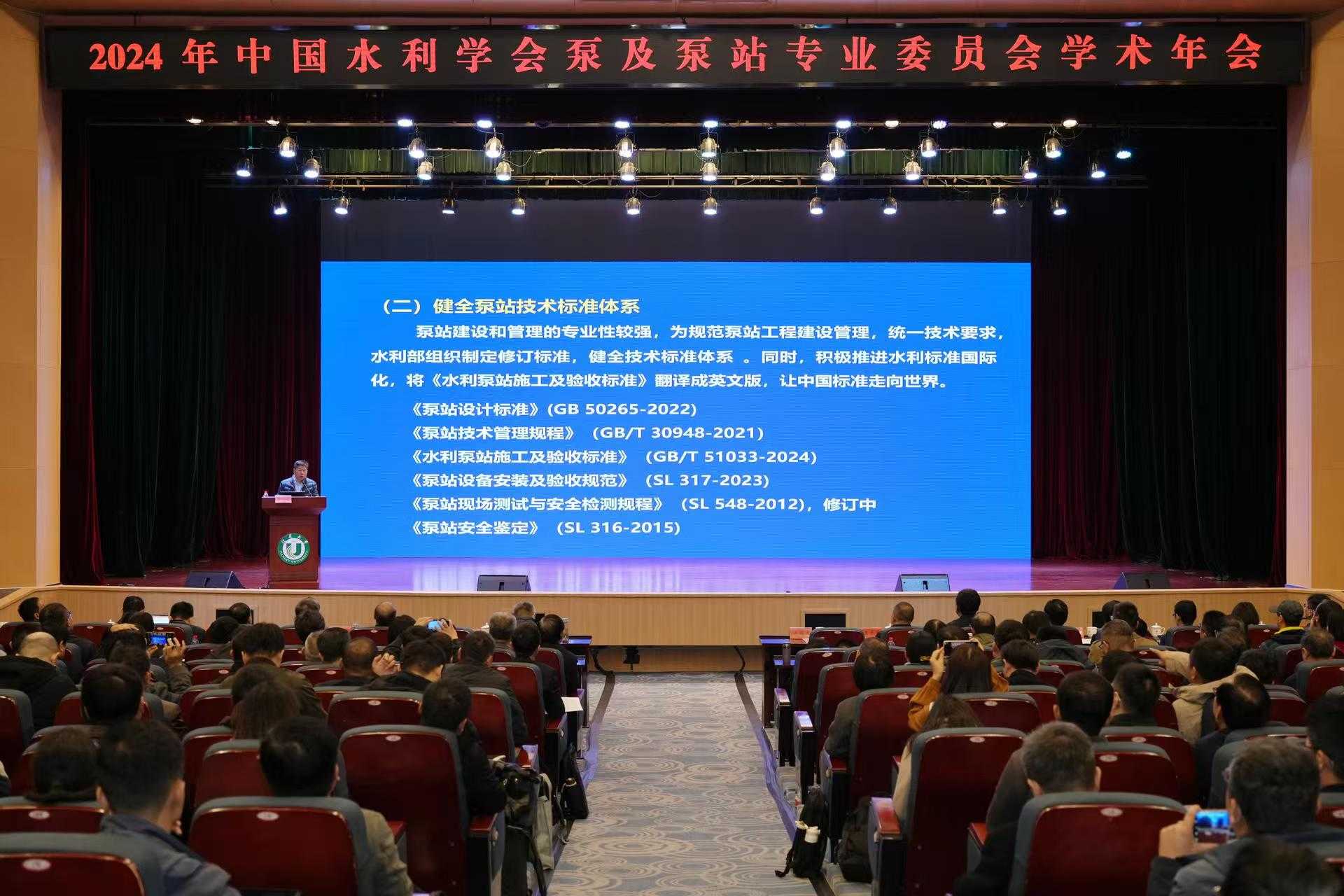 2024年11月23-25日,中国水利学会泵及泵站专业委员会2024年学术年会在江苏省镇江市举办。来自相关运行管理部门、高校、科研院所、生产制造及服务企业等代表齐聚江苏大学,共同围绕“智慧泵站赋能水利新质生产力”这一主题开展了深入的学术交流研讨。会议由中国水利学会泵及泵站专业委员会和江苏大学镇江流体工程装备技术研究院联合主办。中国灌溉排水发展中心、江苏大学、武汉大学、中国农业大学、扬州大学、国家水泵及系统工程技术研究中心、《中国农村水利水电》编辑部、《排灌机械工程学报》编辑部协办。江苏航天水力设备有限公司、利欧集团湖南泵业有限公司、杭州杭发发电设备有限公司、上海凯泉泵业(集团)有限公司、亚太泵阀有限公司、蓝深集团股份有限公司为年会提供了支持。